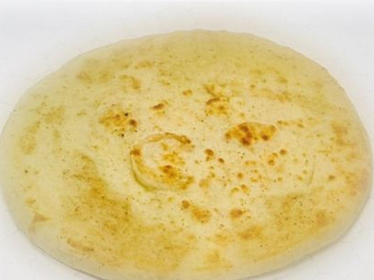 Soft and fluffy, round flatbread with a light golden-brown surface, perfect for accompanying any meal.