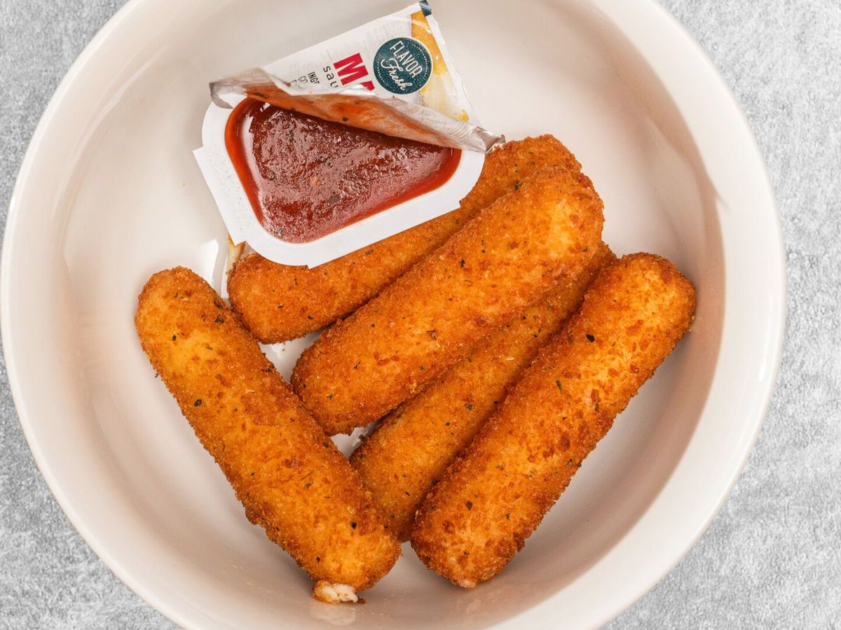 Golden-fried mozzarella sticks, crispy on the outside and filled with melted cheese. Served with a side of marinara dipping sauce for the perfect bite.