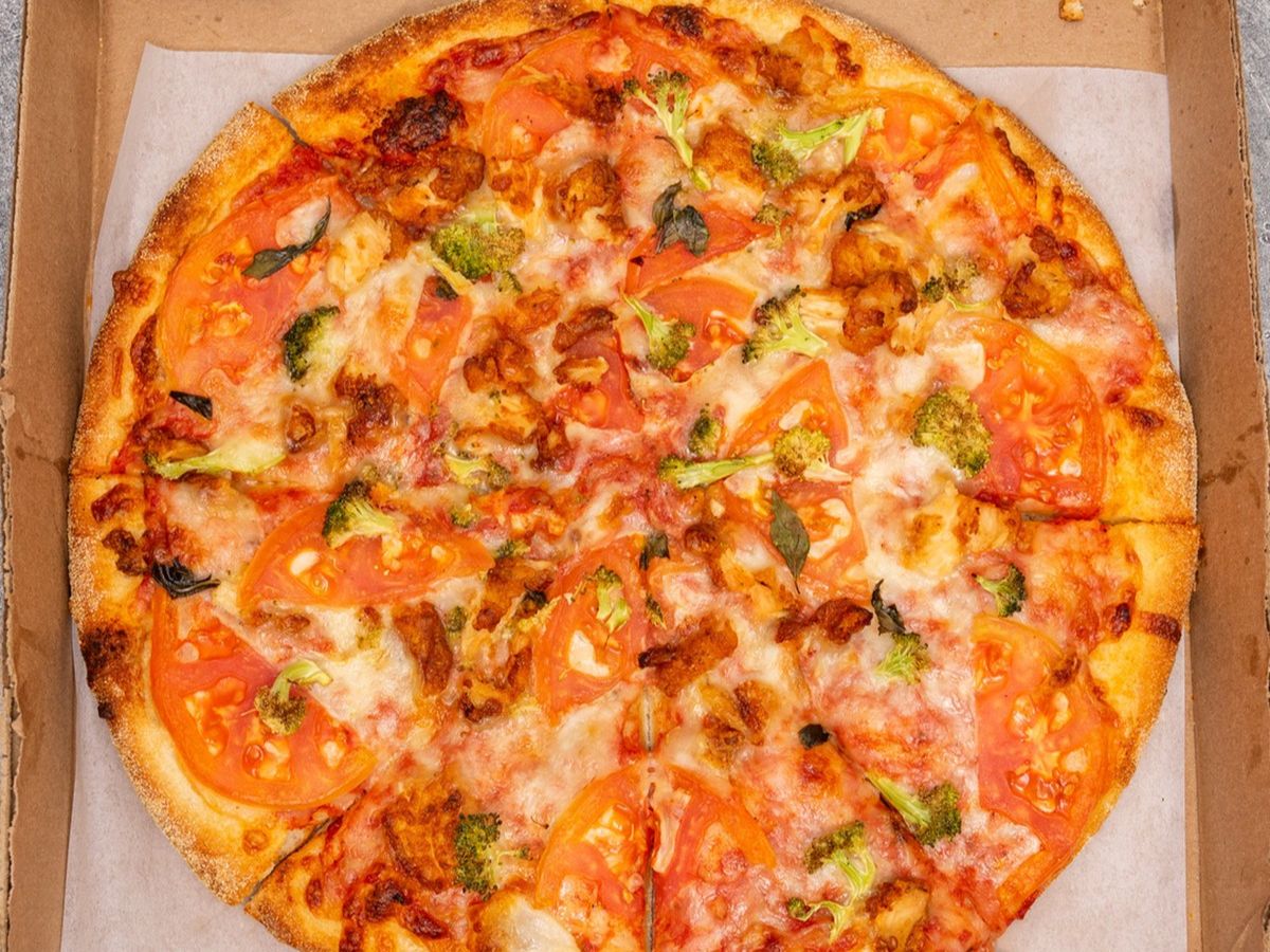 Chicken pieces, mozzarella cheese, Broccoli, tomato basil