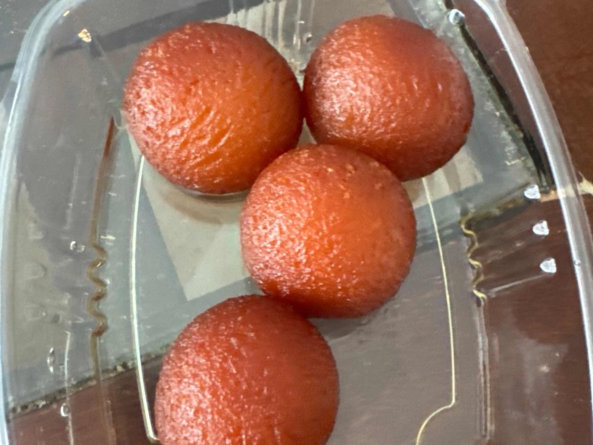 Soft, syrup-soaked dough balls with a hint of cardamom, offering a sweet and rich flavor in every bite. Four pieces per serving.