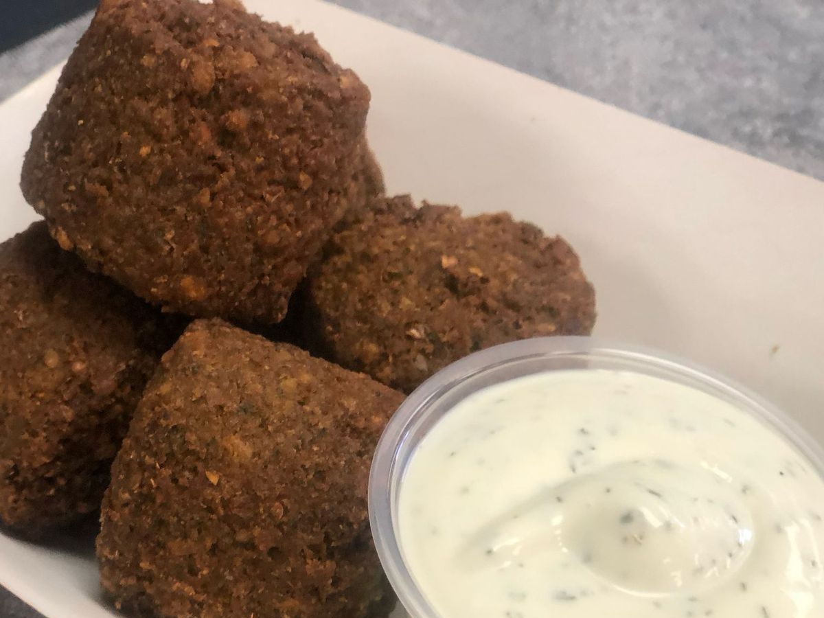 Crispy chickpea patties seasoned with herbs and spices, served in a portion of five pieces.