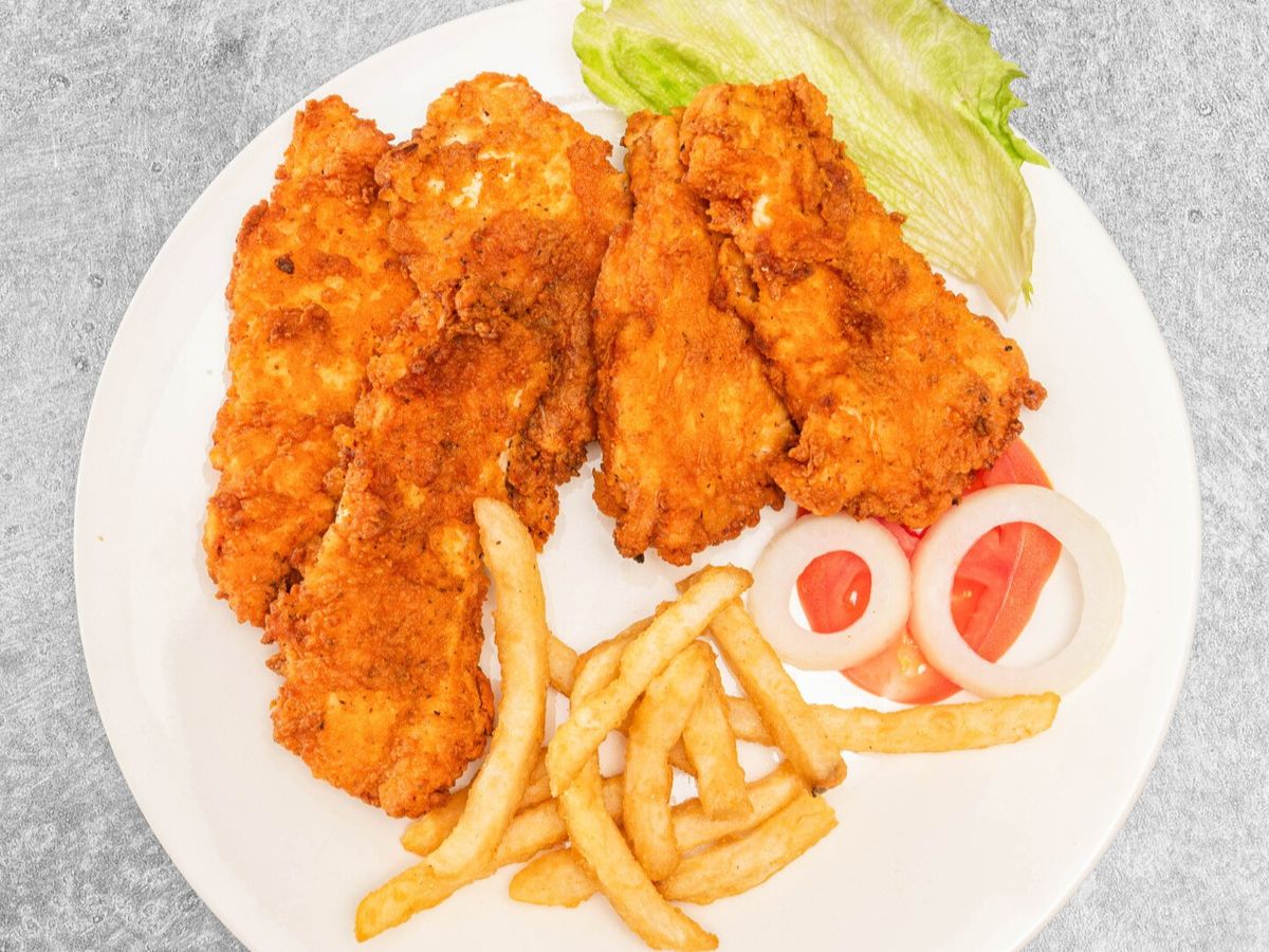 Crispy, breaded chicken tenders, golden-fried and served in a portion of five pieces.
