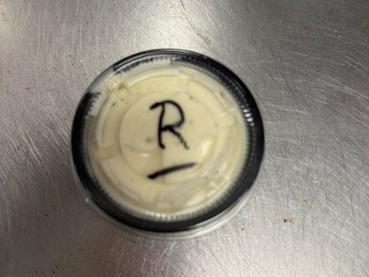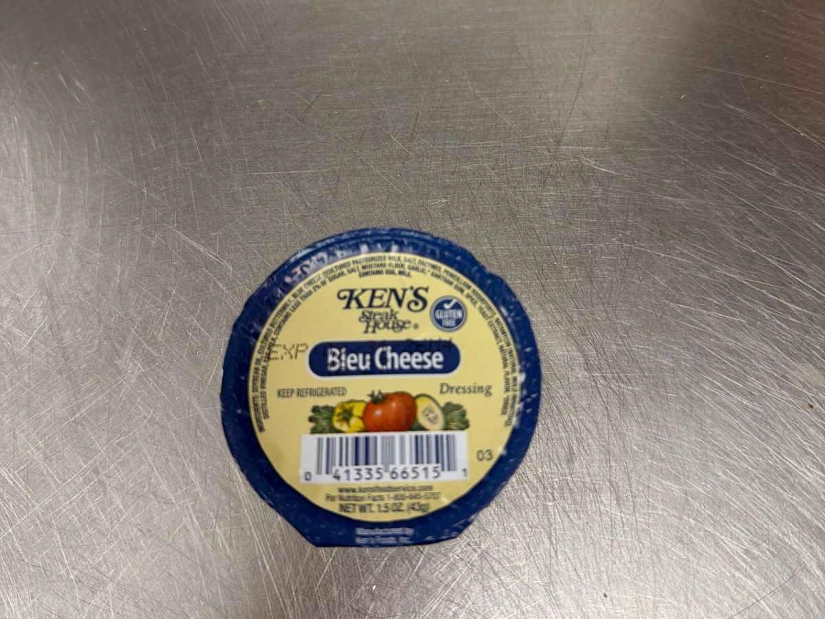 Creamy blue cheese dressing in a convenient cup, perfect for adding a tangy touch to your meal.